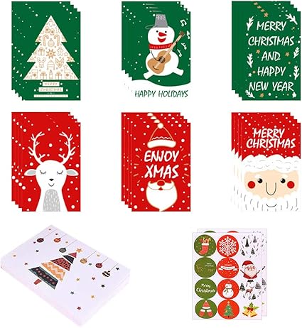 24 Biglietti Di Auguri Natalizi Con Buste 6 Diversi Modelli Di Natale Biglietti Di Auguri Con 24 Adesivi Per Capodanno Amazon It Cancelleria E Prodotti Per Ufficio
